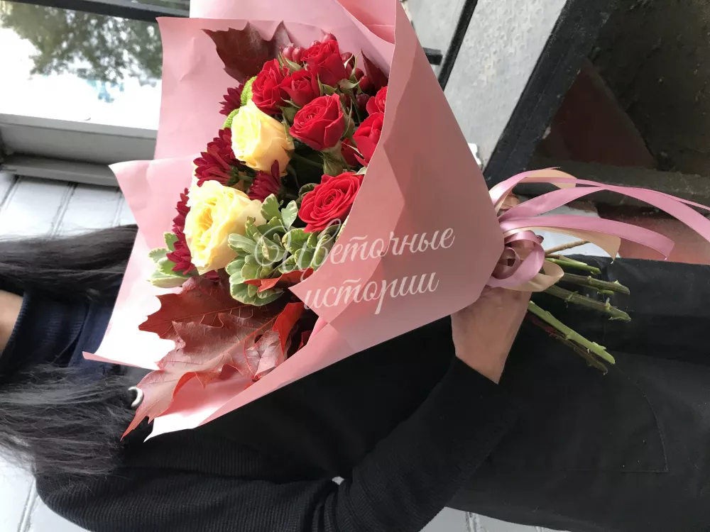 Мы можем создать букет под ваш бюджет, соблюдая все пожелания по составу и цветовой гамме. К букету можем добавить подарок, игрушку, сладости или фрукты.