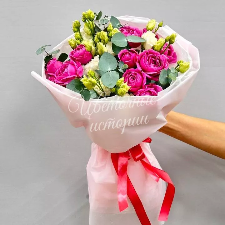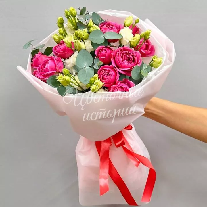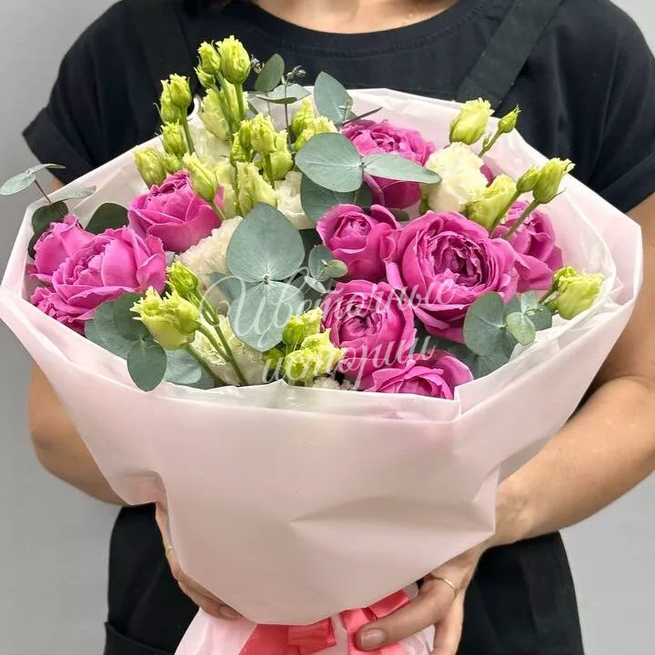 Букет «Сладкий поцелуй» - это невероятно элегантная и чувственная композиция, составленная из кустовой розы и лизиантуса. Каждый цветок в этом букете излучает нежность и романтику, словно приглашая принять волшебный поцелуй. Этот букет словно создан для того, чтобы выразить свои нежные чувства и преподнести незабываемый момент полный тепла, ласки и любви.