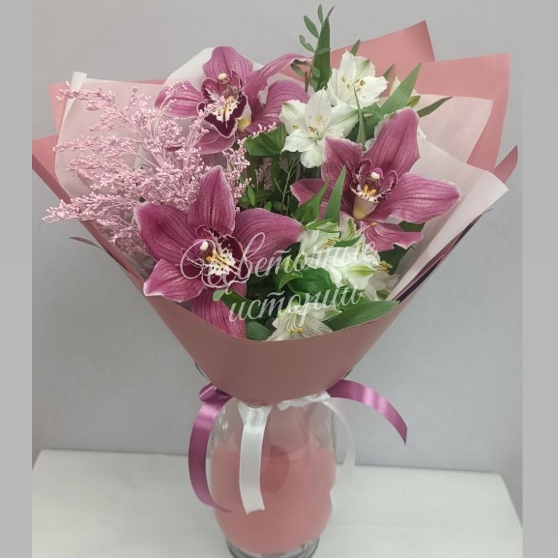 Мы можем создать букет под ваш бюджет, соблюдая все пожелания по составу и цветовой гамме. К букету можем добавить подарок, игрушку, сладости или фрукты.