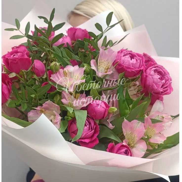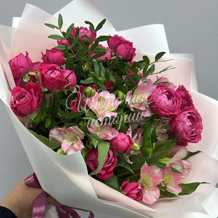 Мы можем создать букет под ваш бюджет, соблюдая все пожелания по составу и цветовой гамме. К букету можем добавить подарок, игрушку, сладости или фрукты.