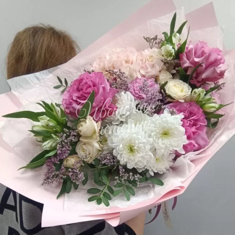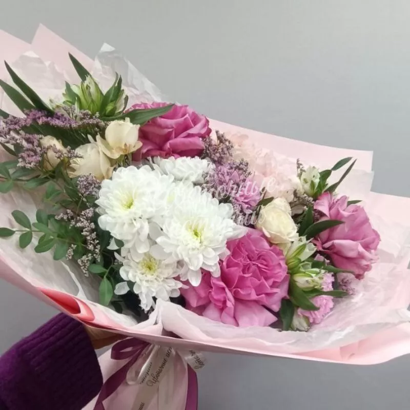Мы можем создать букет под ваш бюджет, соблюдая все пожелания по составу и цветовой гамме. К букету можем добавить подарок, игрушку, сладости или фрукты.