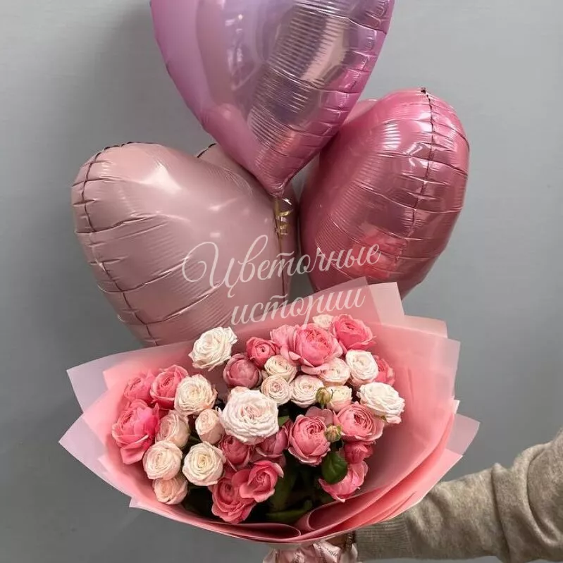 Комбо с пионовидной розой и шарами