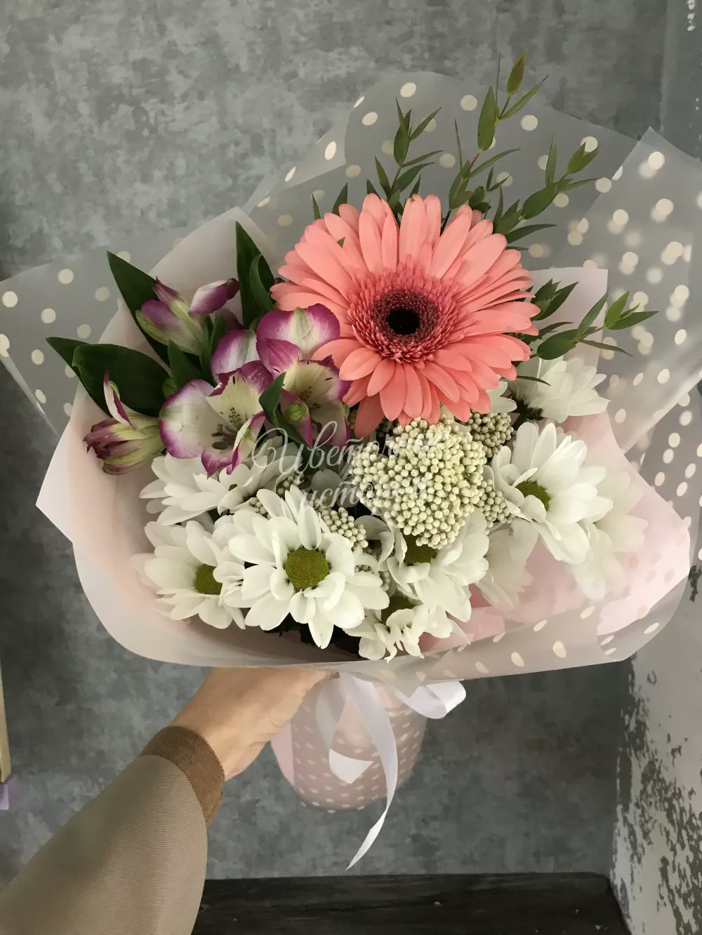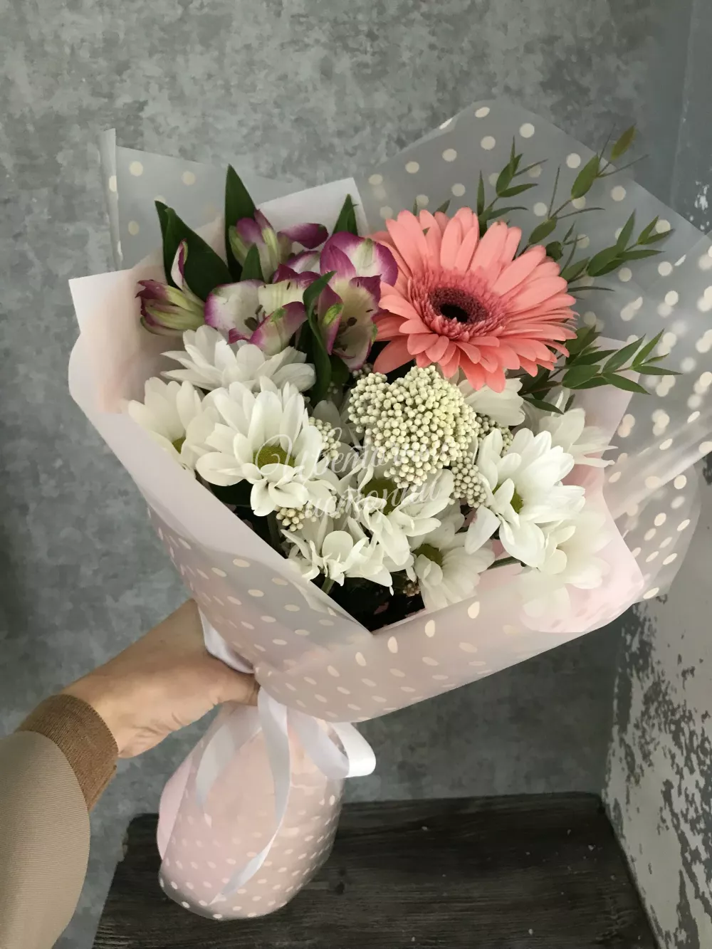 Мы можем создать букет под ваш бюджет, соблюдая все пожелания по составу и цветовой гамме. К букету можем добавить подарок, игрушку, сладости или фрукты.