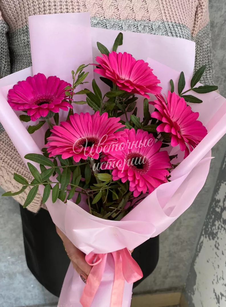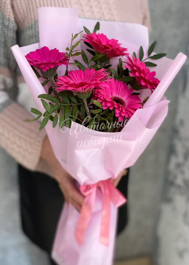 Мы можем создать букет под ваш бюджет, соблюдая все пожелания по составу и цветовой гамме. К букету можем добавить подарок, игрушку, сладости или фрукты.