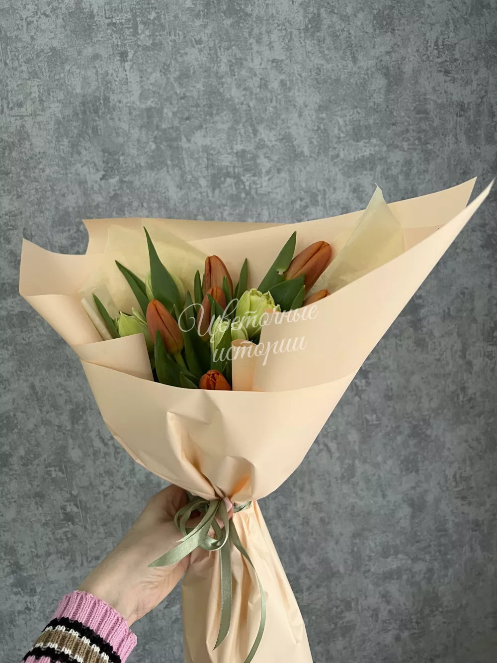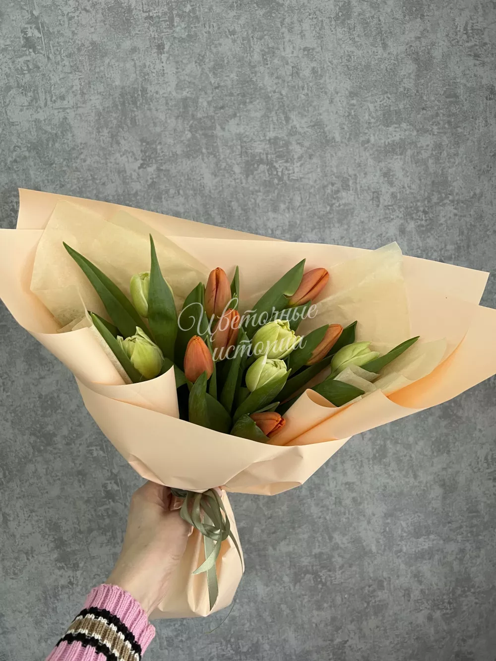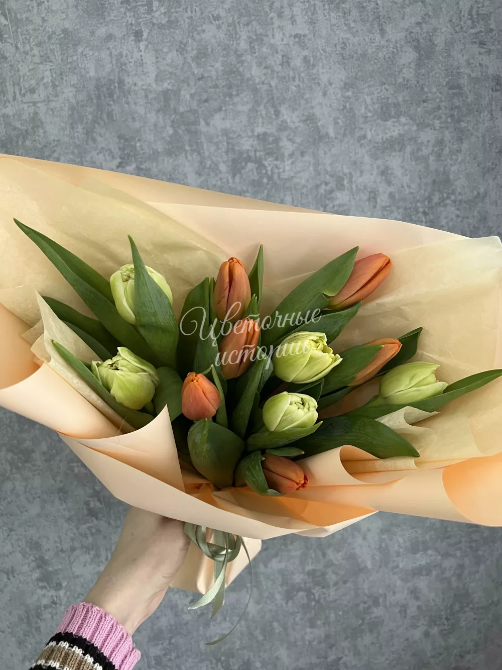 Весенний букет из микса классических и пионовидных тюльпанов в пышной упаковке. Букет может незначительно отличаться от представленного на фото, цвета тюльпанов доступных к заказу уточняйте у менеджера. Цена с учётом всех скидок!