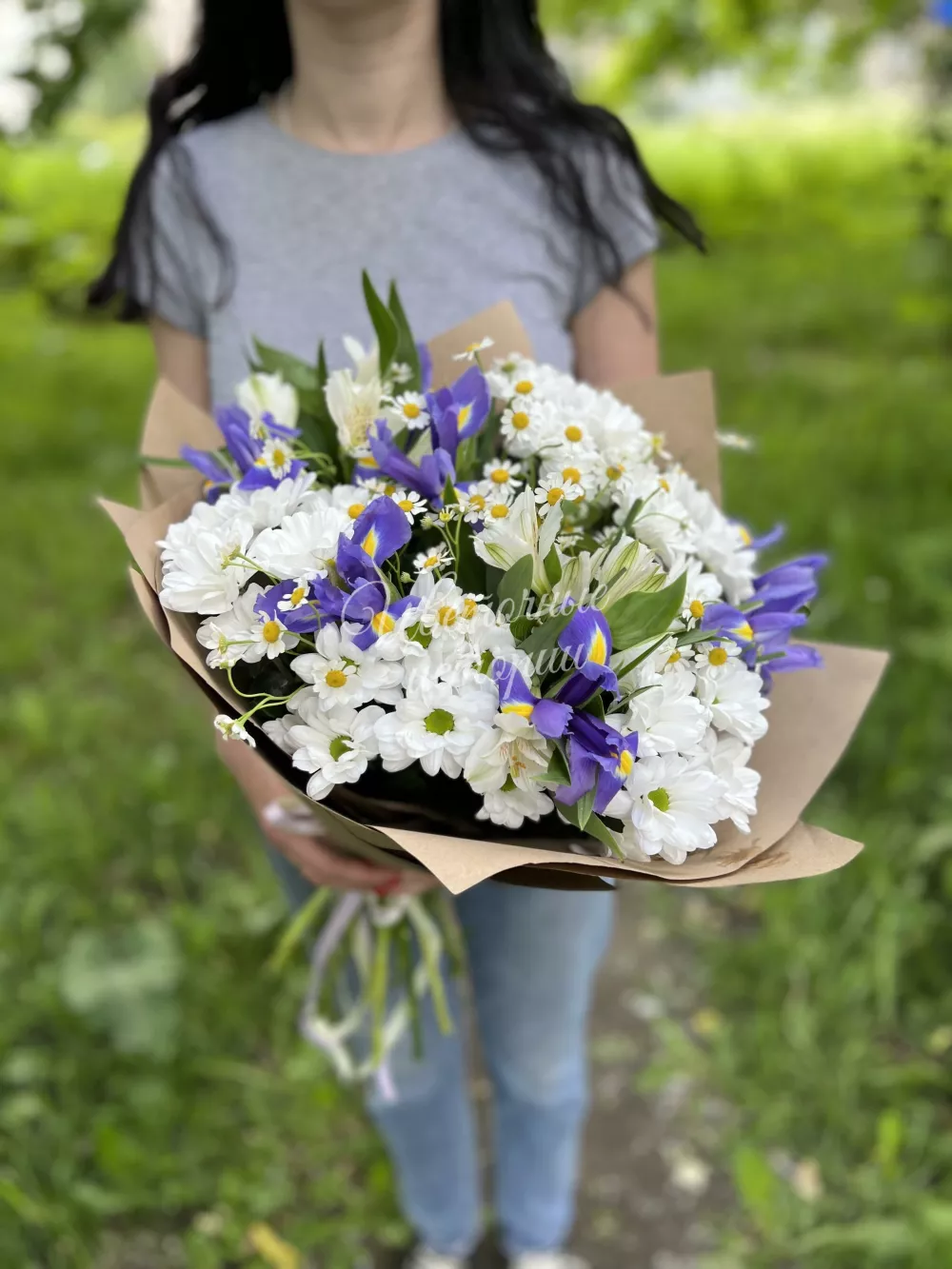 Яркий , игривый , летний и очень красивый! Подойдёт любителям ирисов и ромашек!