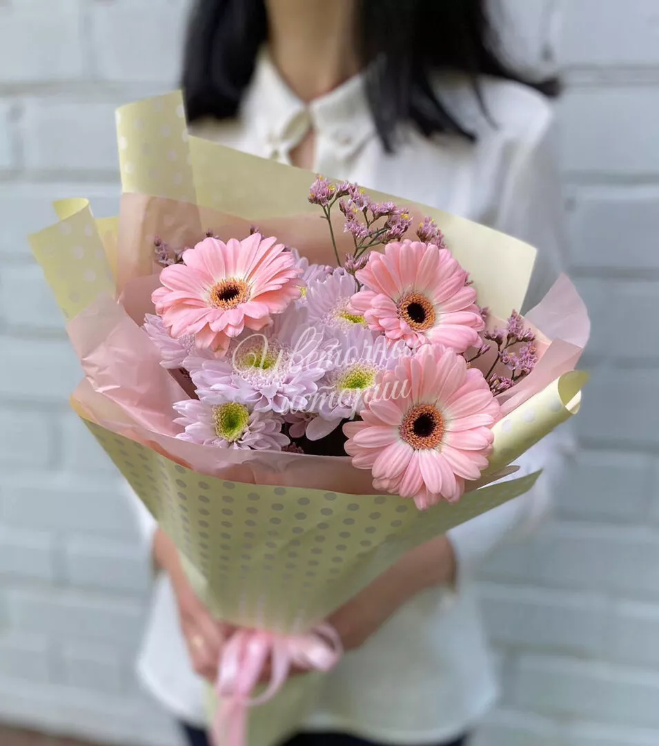 Мы можем создать букет под ваш бюджет, соблюдая все пожелания по составу и цветовой гамме. К букету можем добавить подарок, игрушку, сладости или фрукты.