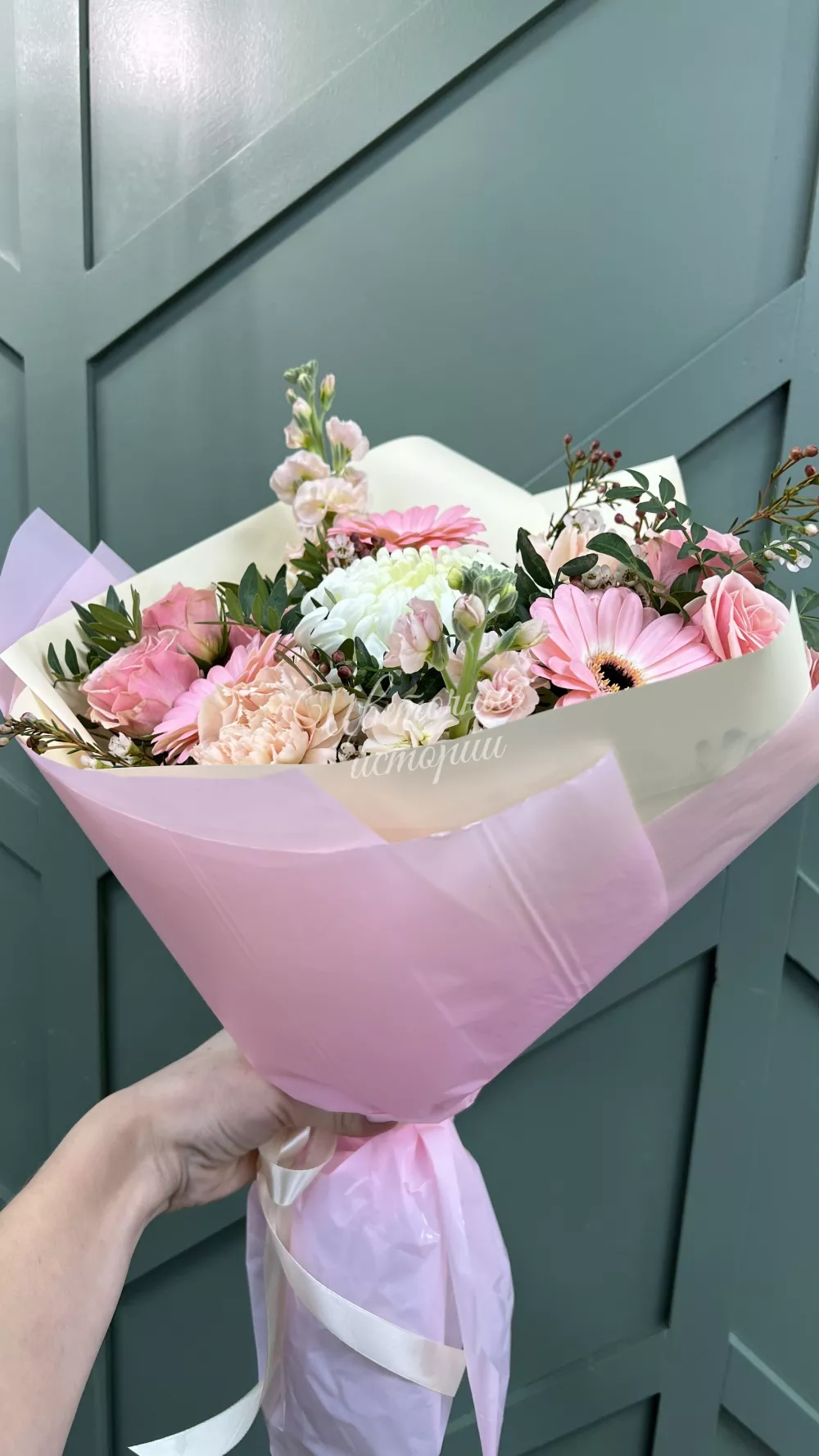 Мы можем создать букет под ваш бюджет, соблюдая все пожелания по составу и цветовой гамме. К букету можем добавить подарок, игрушку, сладости или фрукты.