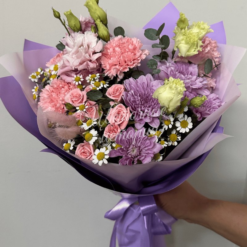 Мы можем создать букет под ваш бюджет, соблюдая все пожелания по составу и цветовой гамме. К букету можем добавить подарок, игрушку, сладости или фрукты.