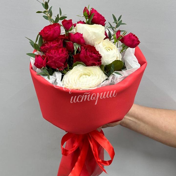 Мы можем создать букет под ваш бюджет, соблюдая все пожелания по составу и цветовой гамме. К букету можем добавить подарок, игрушку, сладости или фрукты.