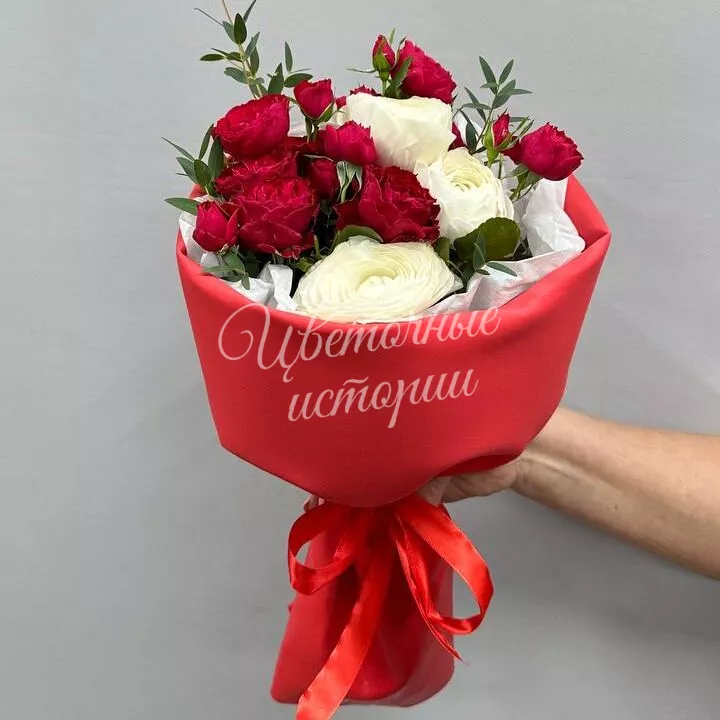 Букет с тюльпанами и ранункулюсом от интернет-магазина «Цветочные истории»