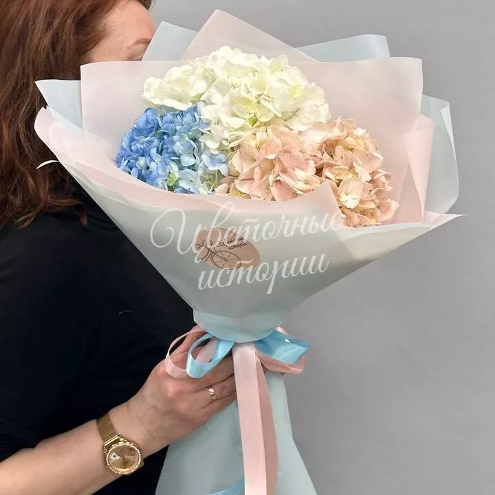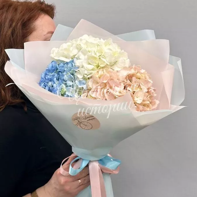 Воздушная гортензия создаёт ощущение мягкости и пушистости, заставляя влюбляться в неё с первого взгляда. Цветочные облака подойдут в качестве подарка на любой праздник и очаруют их владельца.