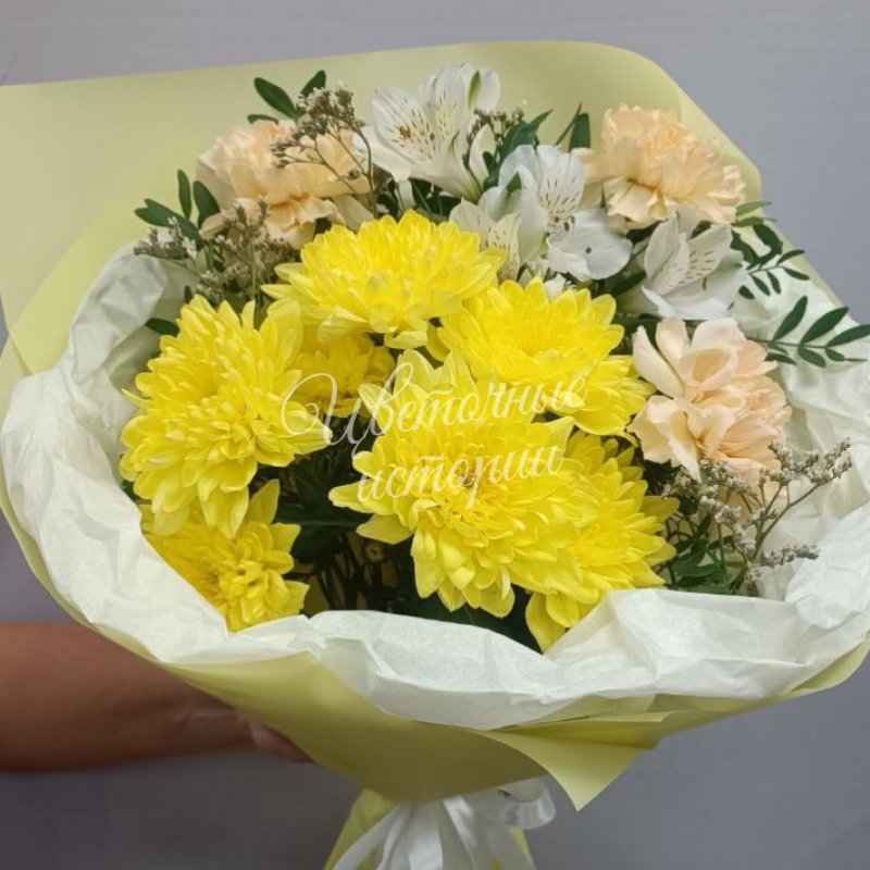 Сборный букет «Букет Нежность с желтой хризантемой»