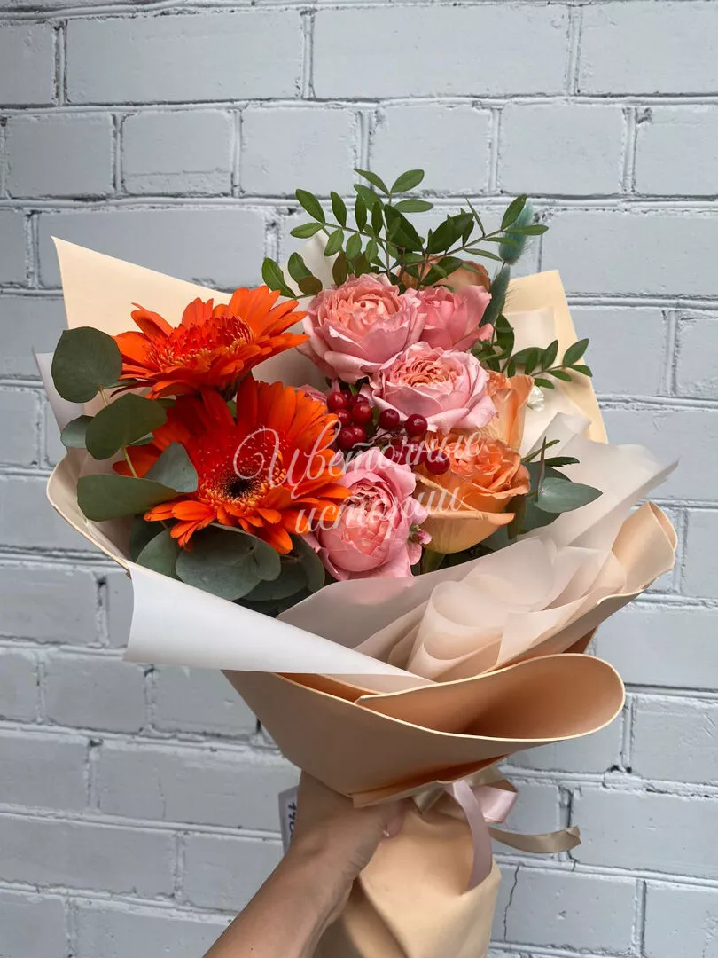 Мы можем создать букет под ваш бюджет, соблюдая все пожелания по составу и цветовой гамме. К букету можем добавить подарок, игрушку, сладости или фрукты.
