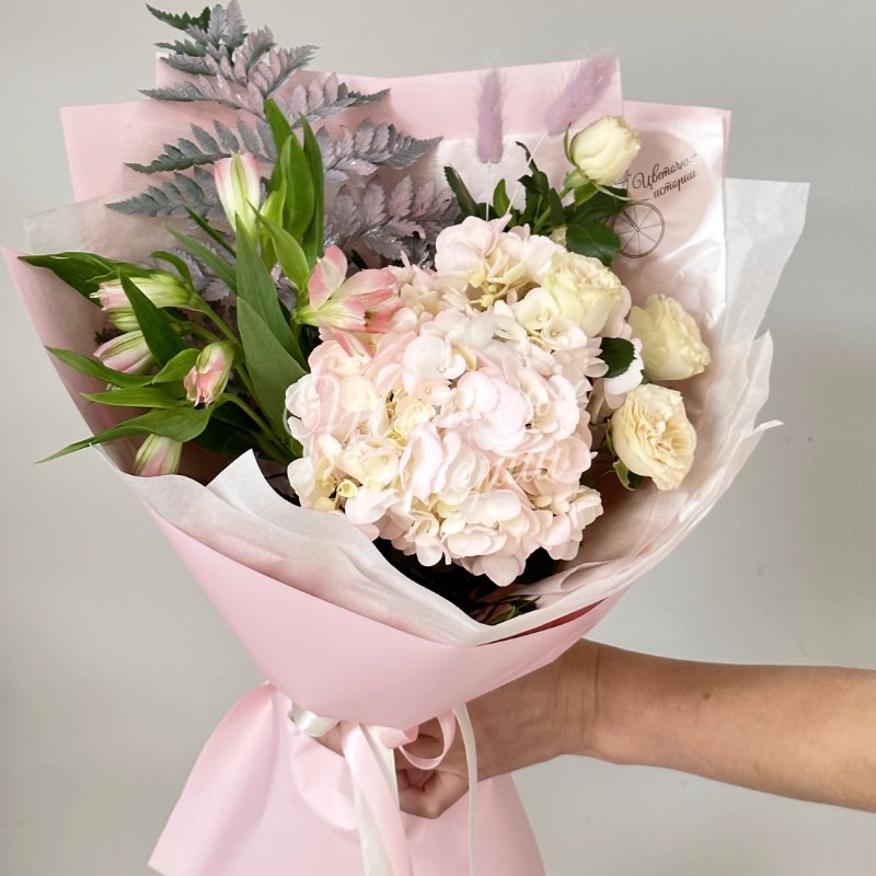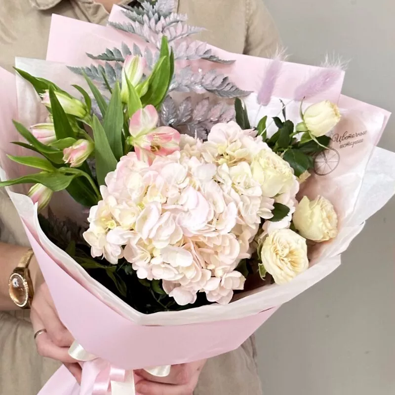 Мы можем создать букет под ваш бюджет, соблюдая все пожелания по составу и цветовой гамме. К букету можем добавить подарок, игрушку, сладости или фрукты.