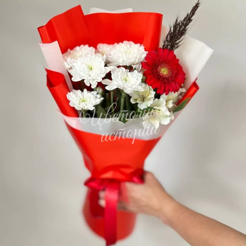Мы можем создать букет под ваш бюджет, соблюдая все пожелания по составу и цветовой гамме. К букету можем добавить подарок, игрушку, сладости или фрукты.