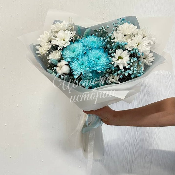 Наш букет "Небесная нежность" - это воплощение чистоты и нежности, идеальное выражение любви и благодарности вашей маме в День Матери. Этот великолепный букет состоит из элегантных голубых и белых хризантем, которые символизируют гармонию, мир и нежность материнской любви. Каждый цветок в этом букете тщательно отобран, чтобы создать впечатление легкости и нежности, как облачко на небе.