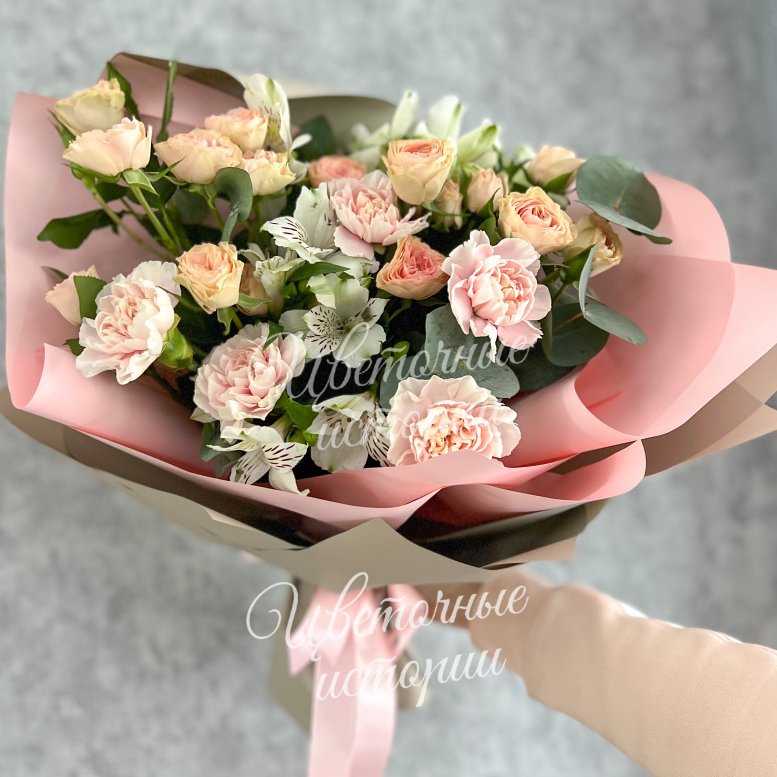 Мы можем создать букет под ваш бюджет, соблюдая все пожелания по составу и цветовой гамме. К букету можем добавить подарок, игрушку, сладости или фрукты.