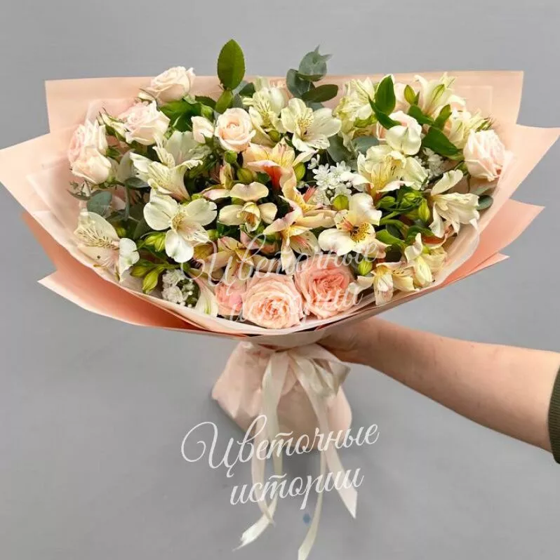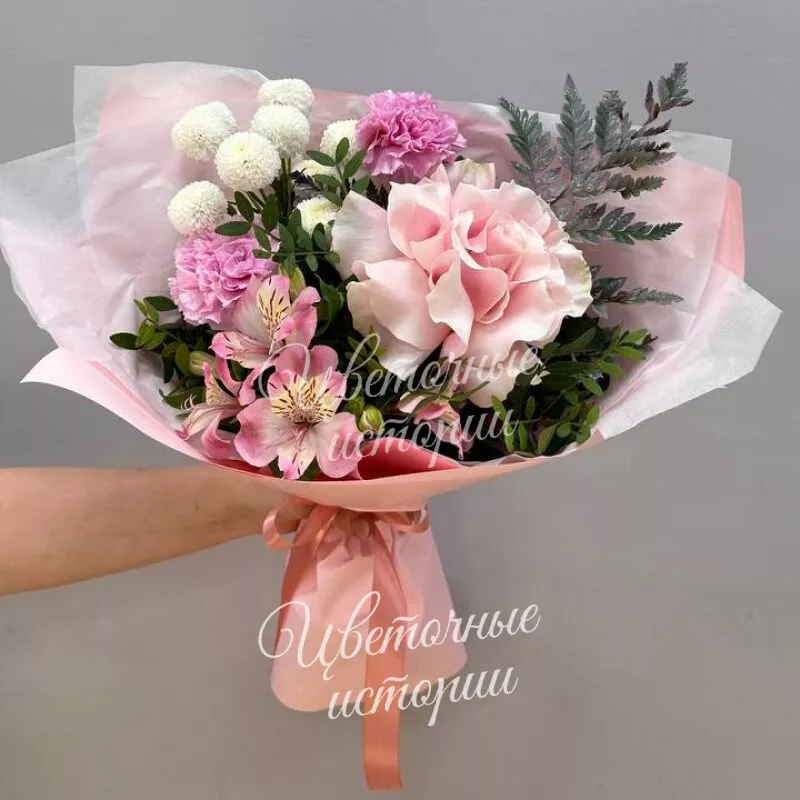 Мы можем создать букет под ваш бюджет, соблюдая все пожелания по составу и цветовой гамме. К букету можем добавить подарок, игрушку, сладости или фрукты.