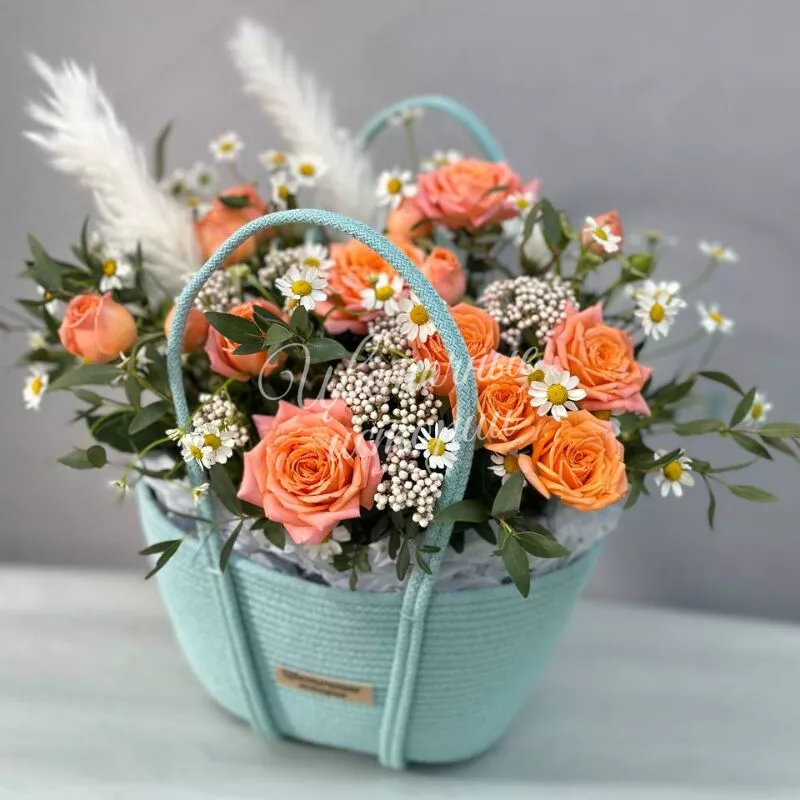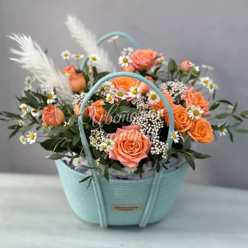 Розы в корзине от интернет-магазина «Цветочные истории»