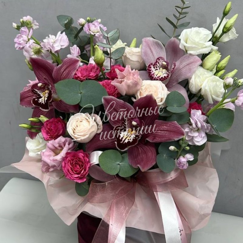 Смотрите также категории: Композиции Букеты из орхидей Красные розы 7 роз Розовые розы Розы Голландия Букеты из гипсофилы