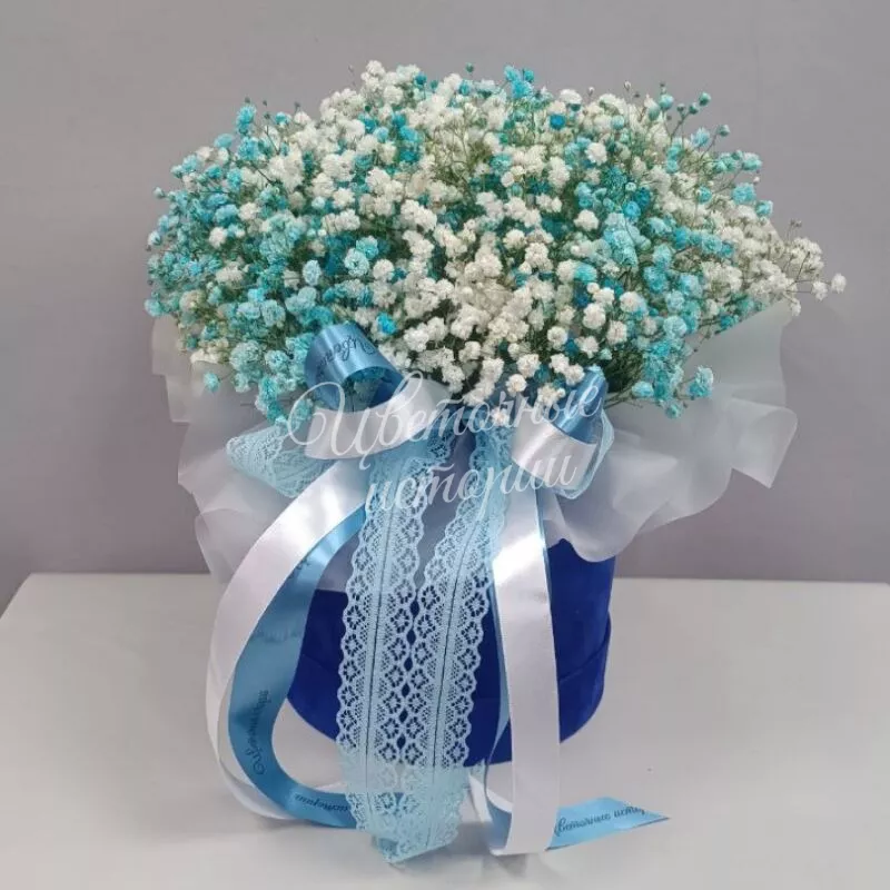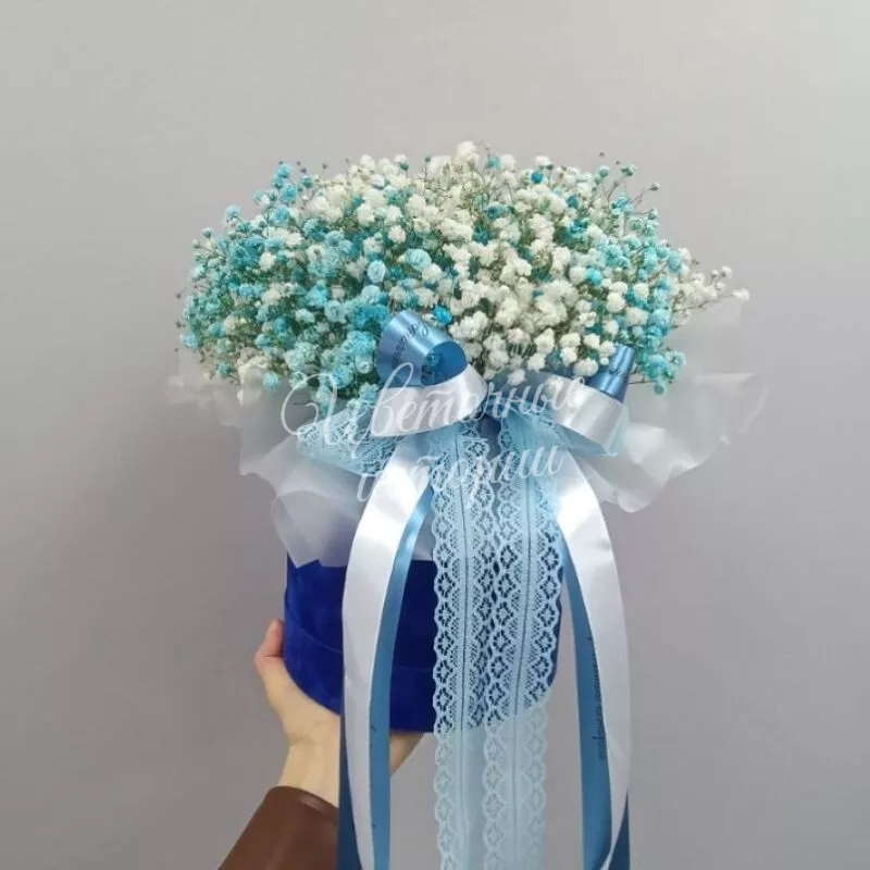 Коробка с гипсофилой цветной