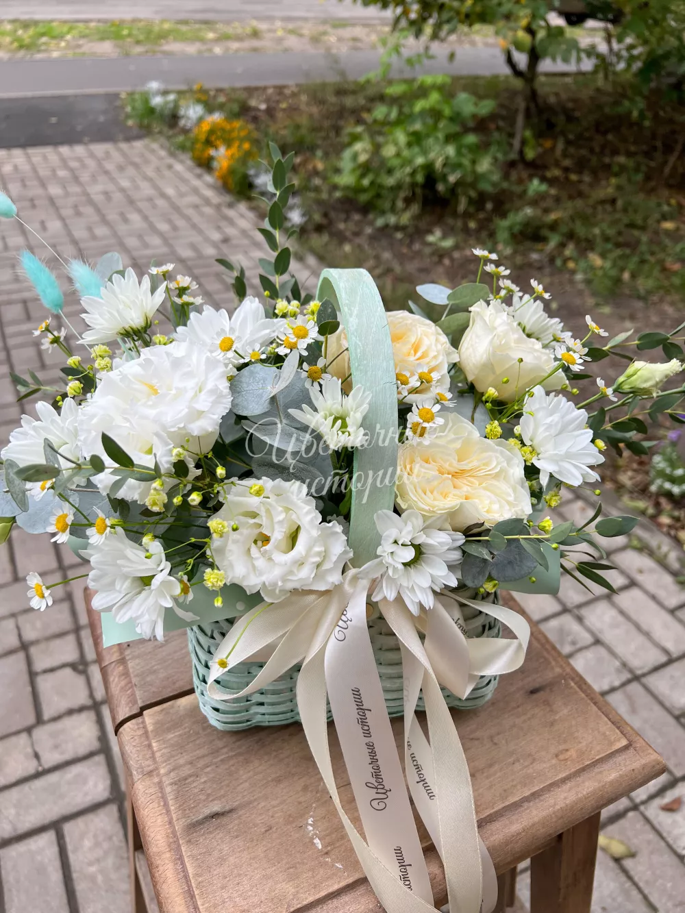 На эту композицию хочется смотреть и рассматривать, нежность и кружева цветов завораживают. Подходит для самых добрых и искренних чувств !