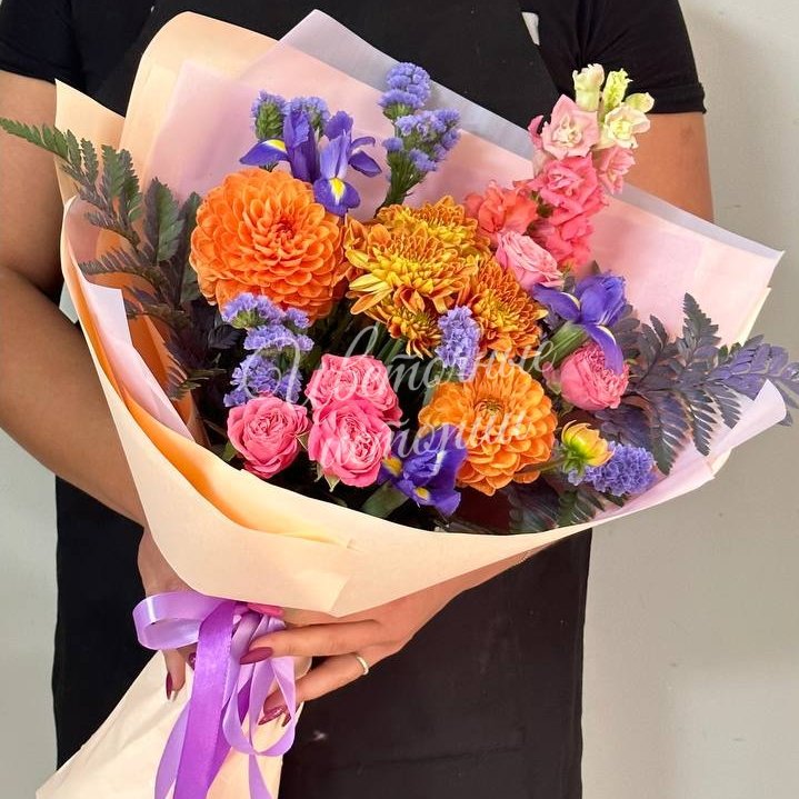 Мы можем создать букет под ваш бюджет, соблюдая все пожелания по составу и цветовой гамме. К букету можем добавить подарок, игрушку, сладости или фрукты.