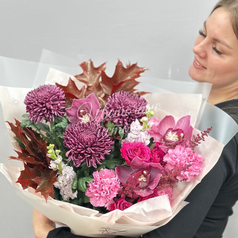 Мы можем создать букет под ваш бюджет, соблюдая все пожелания по составу и цветовой гамме. К букету можем добавить подарок, игрушку, сладости или фрукты.