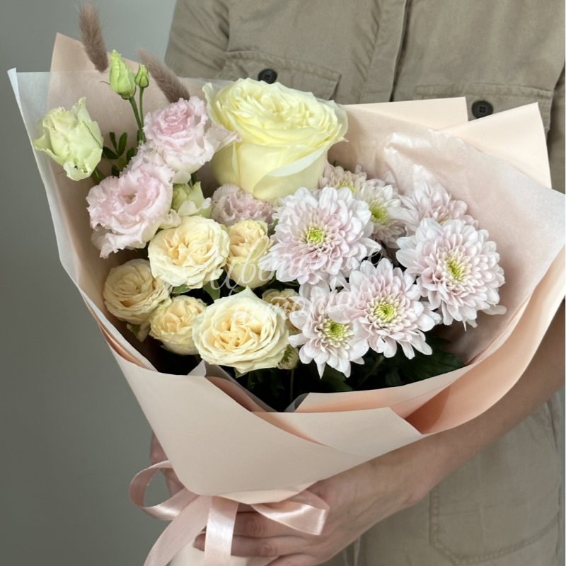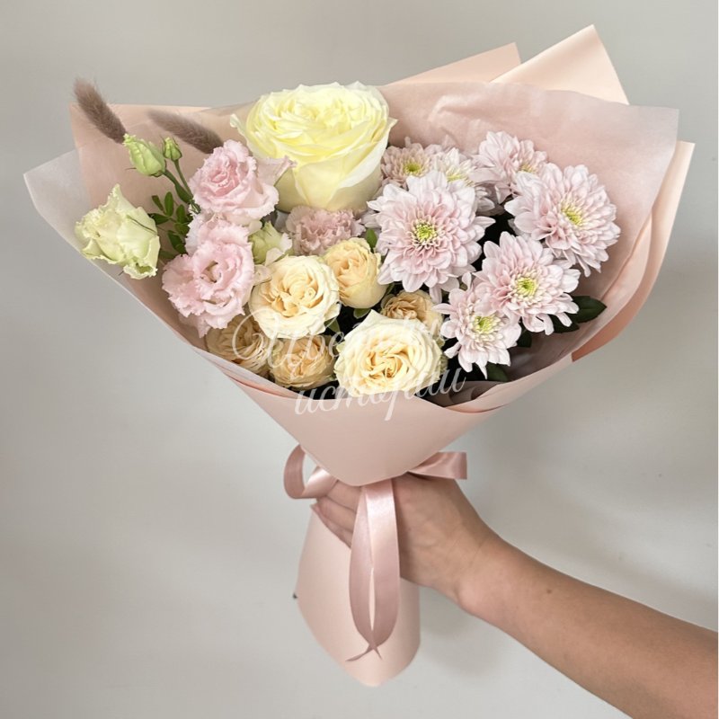 Мы можем создать букет под ваш бюджет, соблюдая все пожелания по составу и цветовой гамме. К букету можем добавить подарок, игрушку, сладости или фрукты.