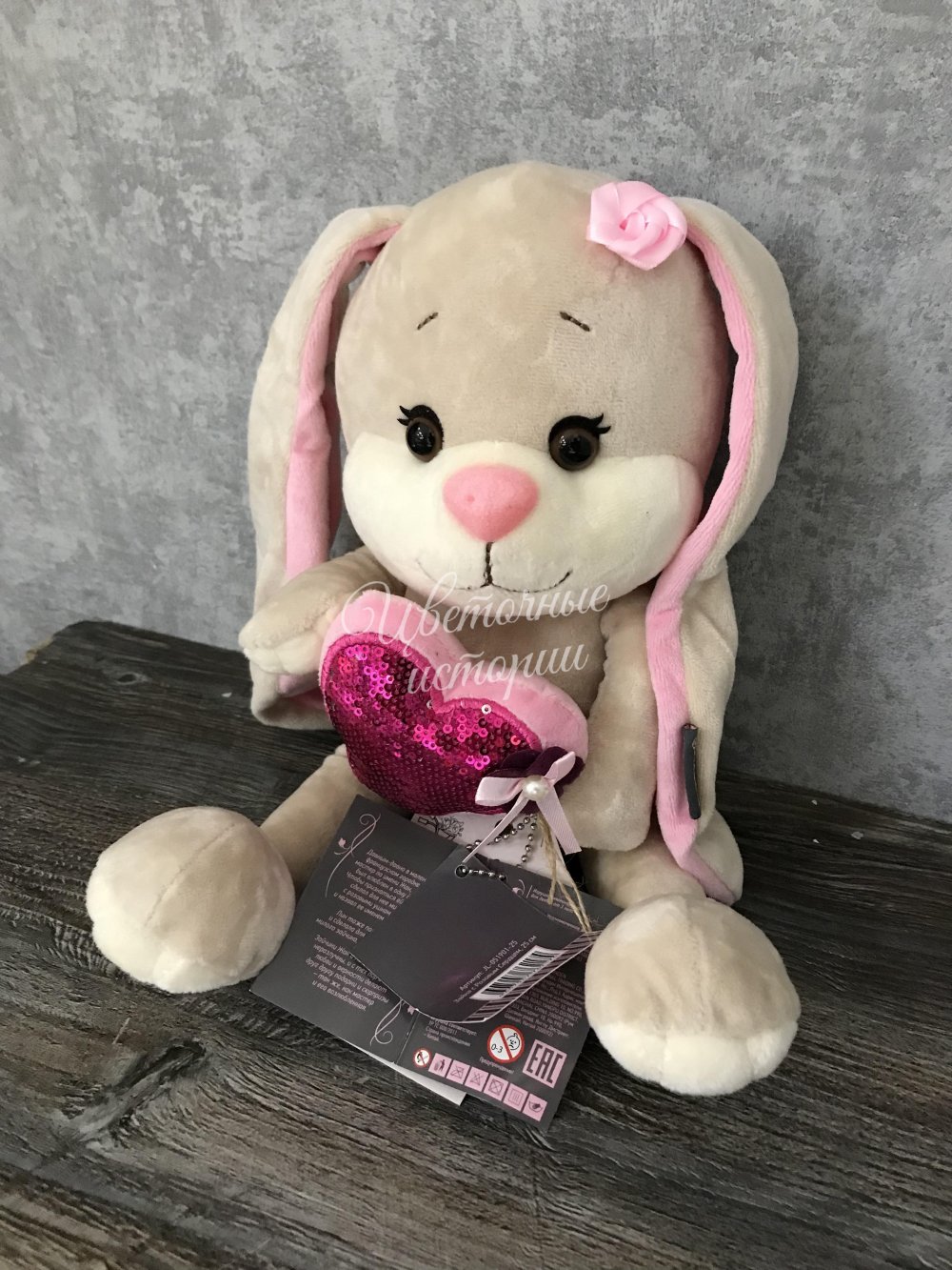 Мягкая зайка с сердцем и длинными ушками подарит приятные впечатления. Понравится и ребенку и взрослому. Высота зайки 25 см. Арт.:JL-051901-25