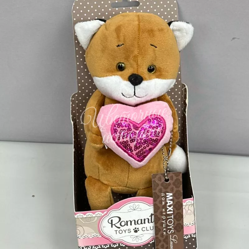 Романтичный лисенок с сердечком ,20 см