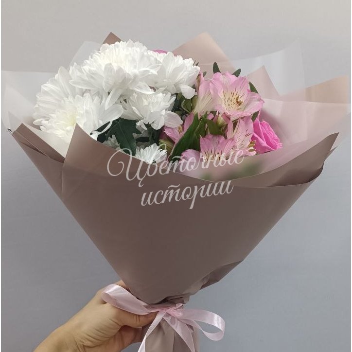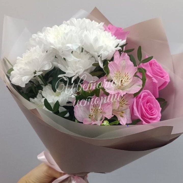 Мы можем создать букет под ваш бюджет, соблюдая все пожелания по составу и цветовой гамме. К букету можем добавить подарок, игрушку, сладости или фрукты.