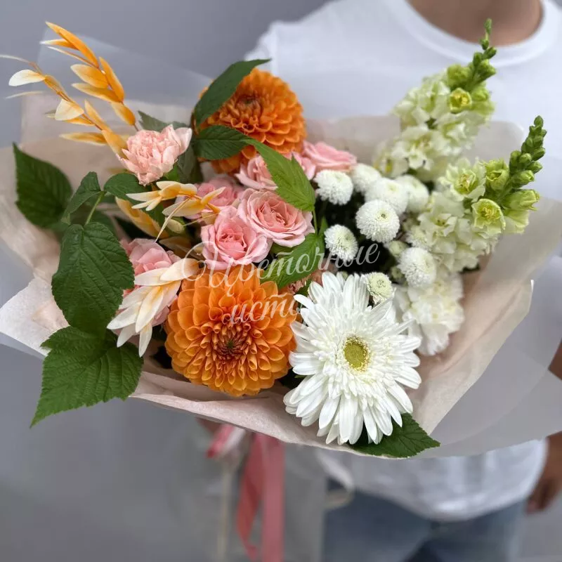 Мы можем создать букет под ваш бюджет, соблюдая все пожелания по составу и цветовой гамме. К букету можем добавить подарок, игрушку, сладости или фрукты.