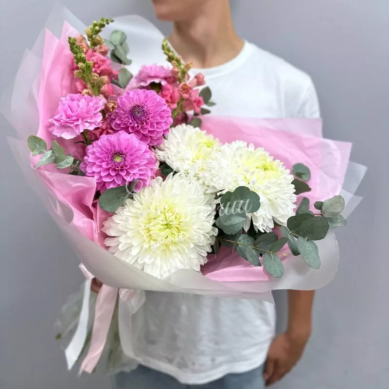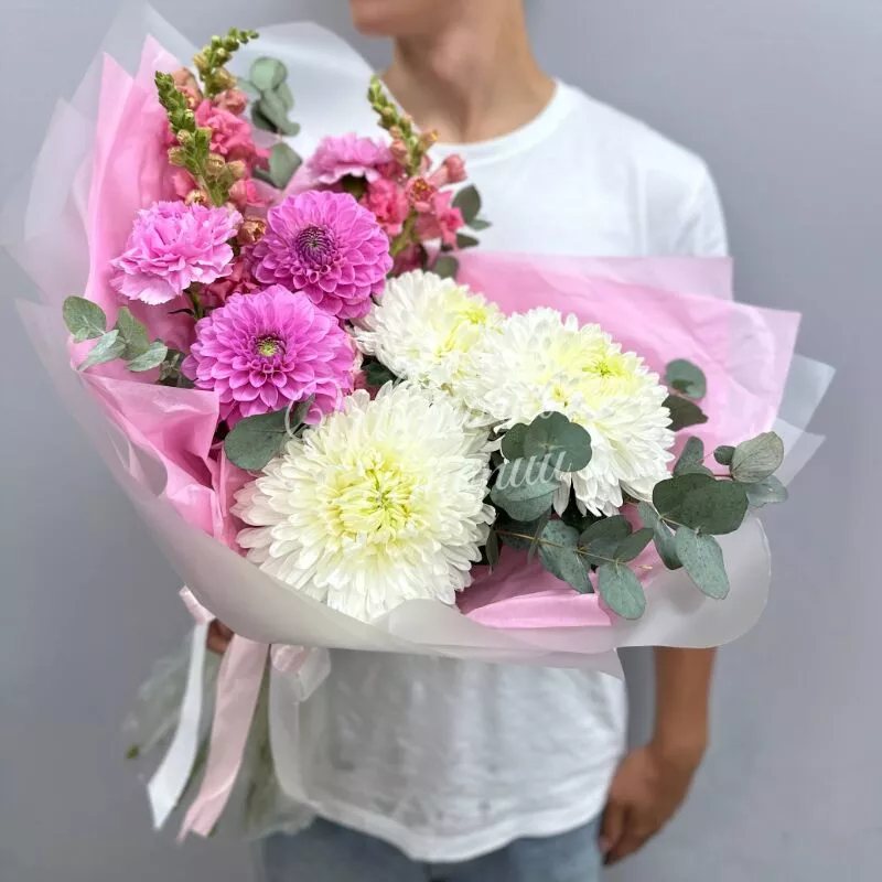 Мы можем создать букет под ваш бюджет, соблюдая все пожелания по составу и цветовой гамме. К букету можем добавить подарок, игрушку, сладости или фрукты.