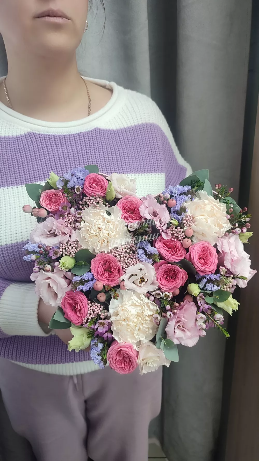 Мы можем создать букет под ваш бюджет, соблюдая все пожелания по составу и цветовой гамме. К букету можем добавить подарок, игрушку, сладости или фрукты.