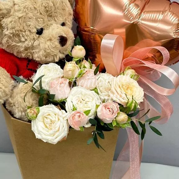 Мы можем создать букет под ваш бюджет, соблюдая все пожелания по составу и цветовой гамме. К букету можем добавить подарок, игрушку, сладости или фрукты.