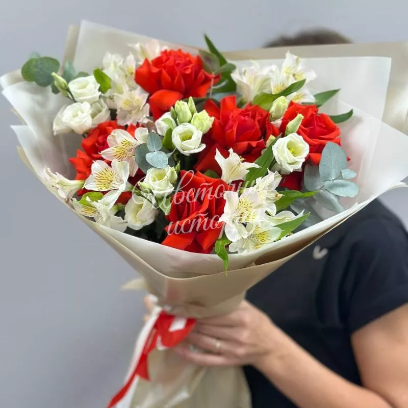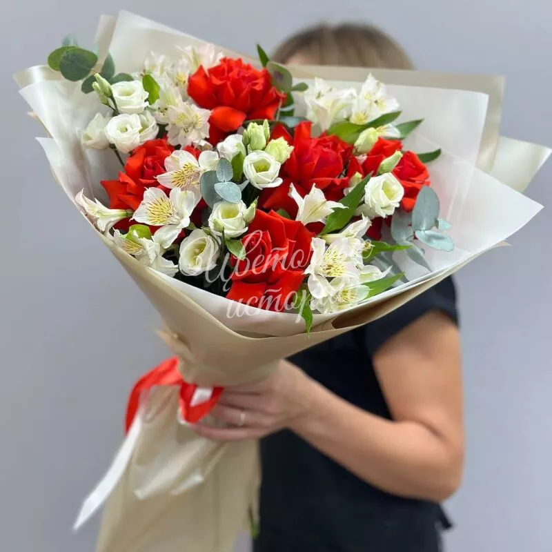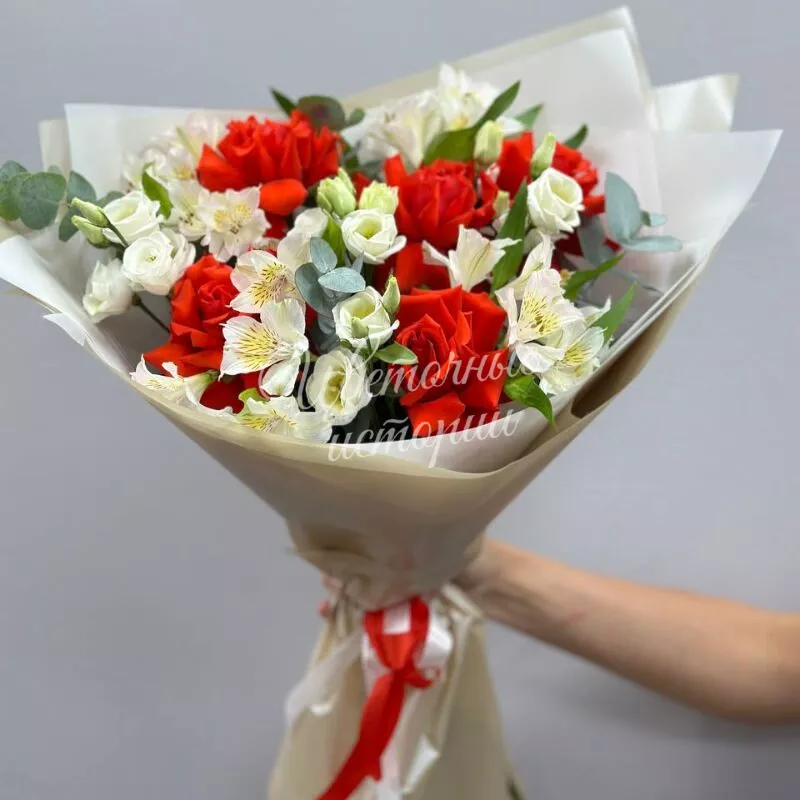 Мы можем создать букет под ваш бюджет, соблюдая все пожелания по составу и цветовой гамме. К букету можем добавить подарок, игрушку, сладости или фрукты.
