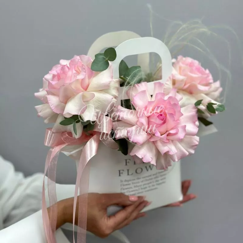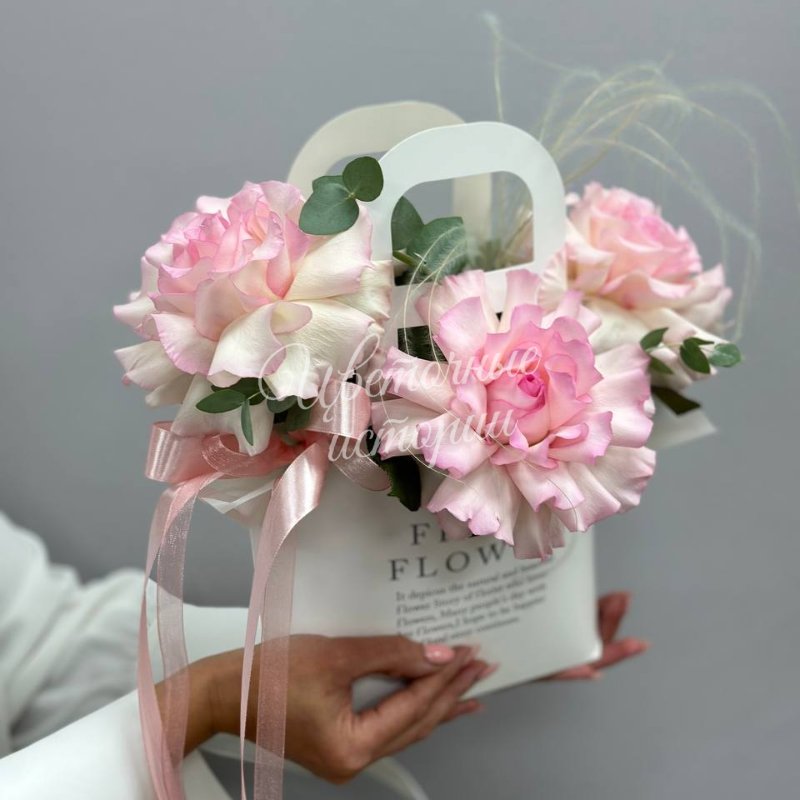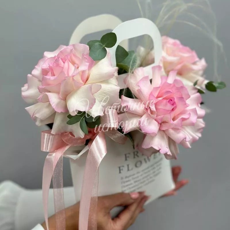 Букет с французскими розами, дополненными зелеными веточками эвкалипта, символизирует путь к маминому сердцу. Он будет ярким напоминанием о том, что настоящая любовь всегда найдёт дорогу к самым дорогим людям.