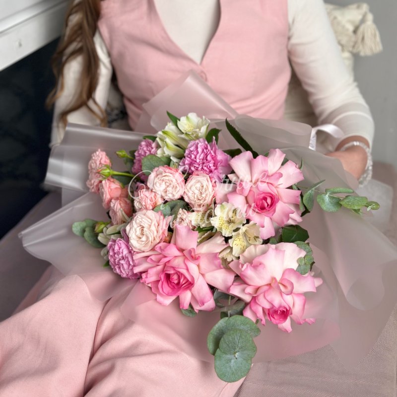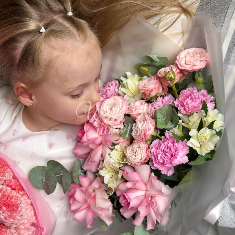 Мы можем создать букет под ваш бюджет, соблюдая все пожелания по составу и цветовой гамме. К букету можем добавить подарок, игрушку, сладости или фрукты.