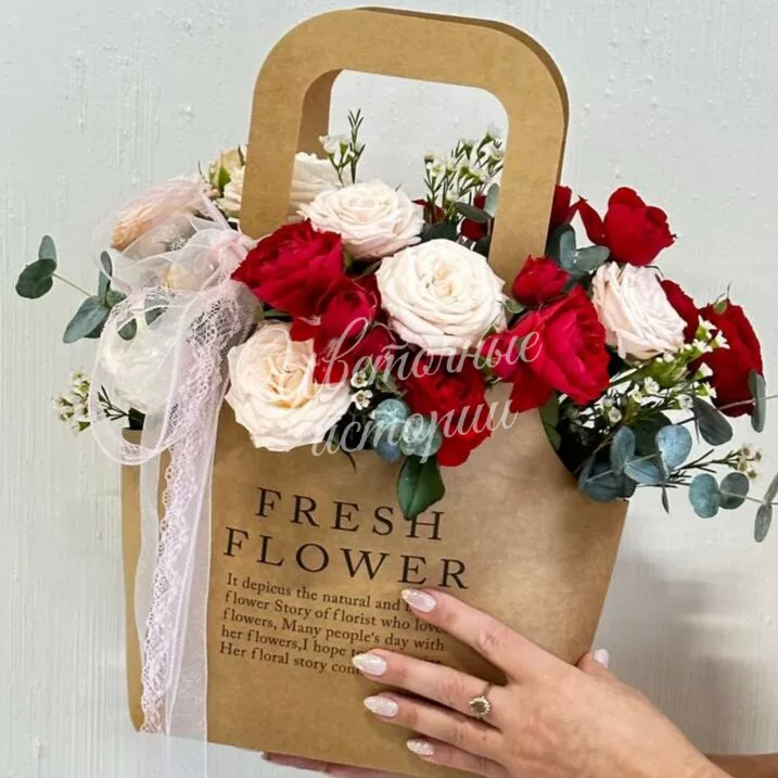Шкатулка чувств - это удивительная композиция цветов, созданная для того, чтобы выразить и передать самые глубокие чувства. В этой композиции преобладают нежно розовые и красные розы, они являются верными послами наших самых искренних эмоций.