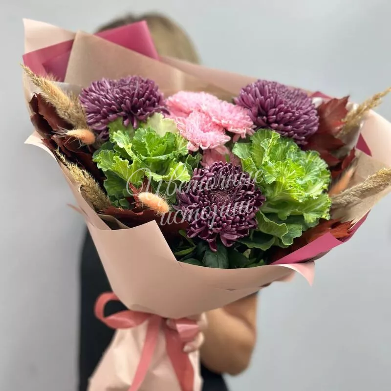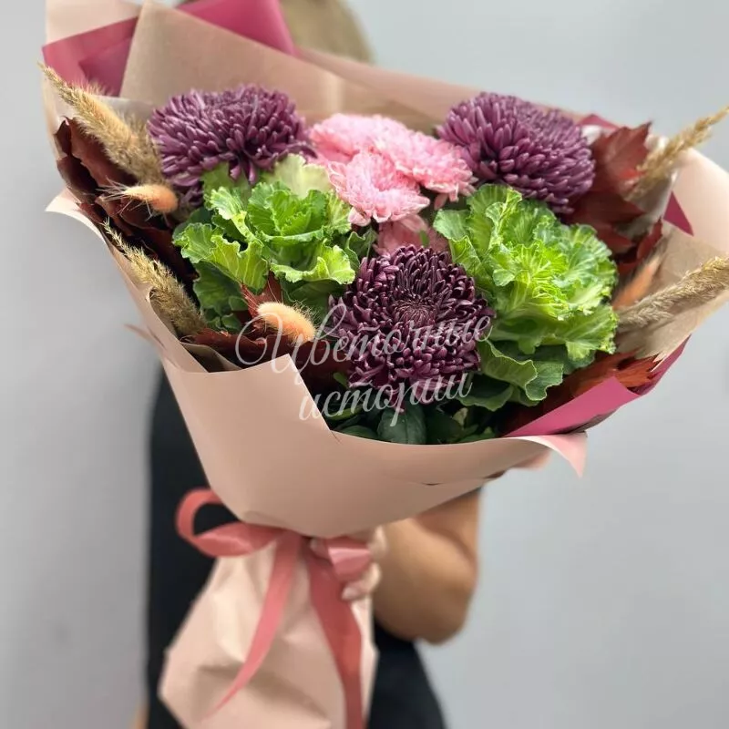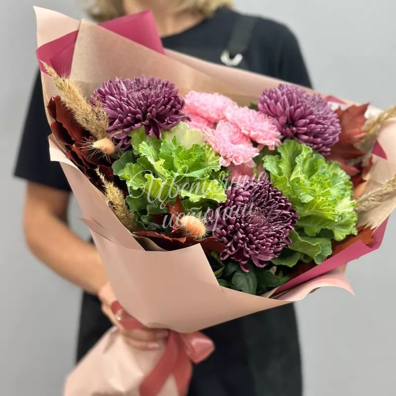 Мы можем создать букет под ваш бюджет, соблюдая все пожелания по составу и цветовой гамме. К букету можем добавить подарок, игрушку, сладости или фрукты.