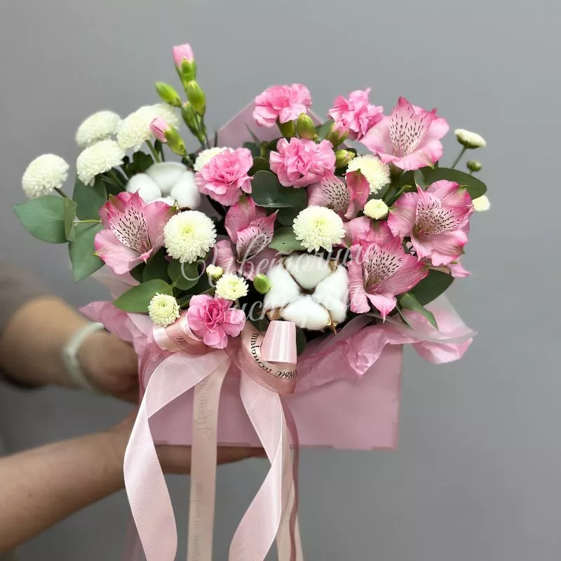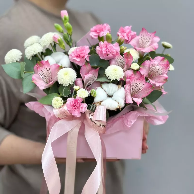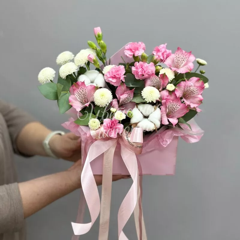 «Цветочное настроение» — это нежная и изысканная композиция, которая сочетает в себе гармонию пастельных тонов. Эта композиция идеально подойдет для создания уютной атмосферы и выражения теплых чувств.