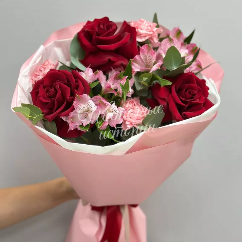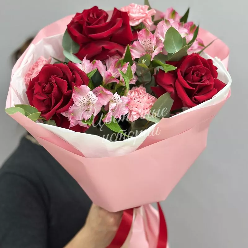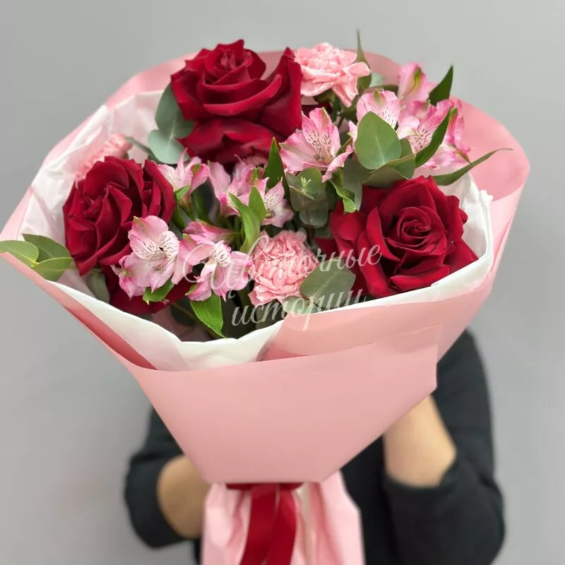 Букет "Магия роз» — сочетание нежности и страсти одном букете. Роскошные розы свежие альстромерии и изящные диантусы создают гармонию цвета и формы. Каждый цветок тщательно отобран для идеальной композиции. Подарите близким мгновения восхищения.
