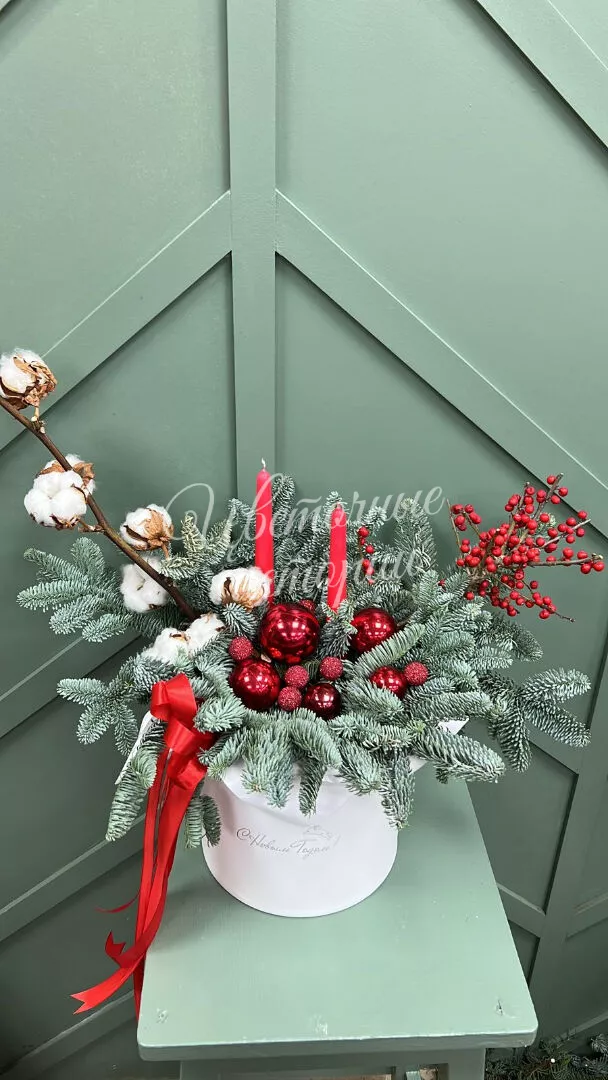 Традиционная красно-зеленая новогодняя композиция удачный подарок для семьи, коллектива, украшения дома и на ресепшен