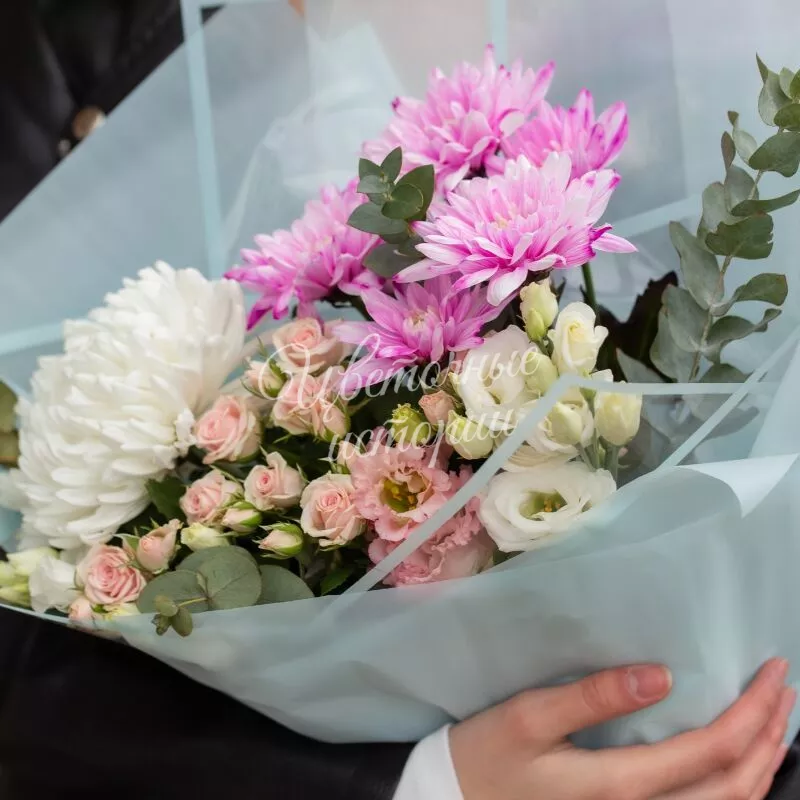 Мы можем создать букет под ваш бюджет, соблюдая все пожелания по составу и цветовой гамме. К букету можем добавить подарок, игрушку, сладости или фрукты.