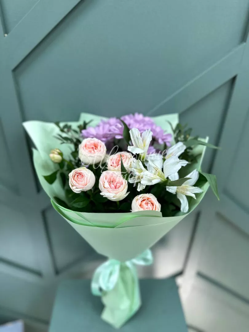 Мы можем создать букет под ваш бюджет, соблюдая все пожелания по составу и цветовой гамме. К букету можем добавить подарок, игрушку, сладости или фрукты.