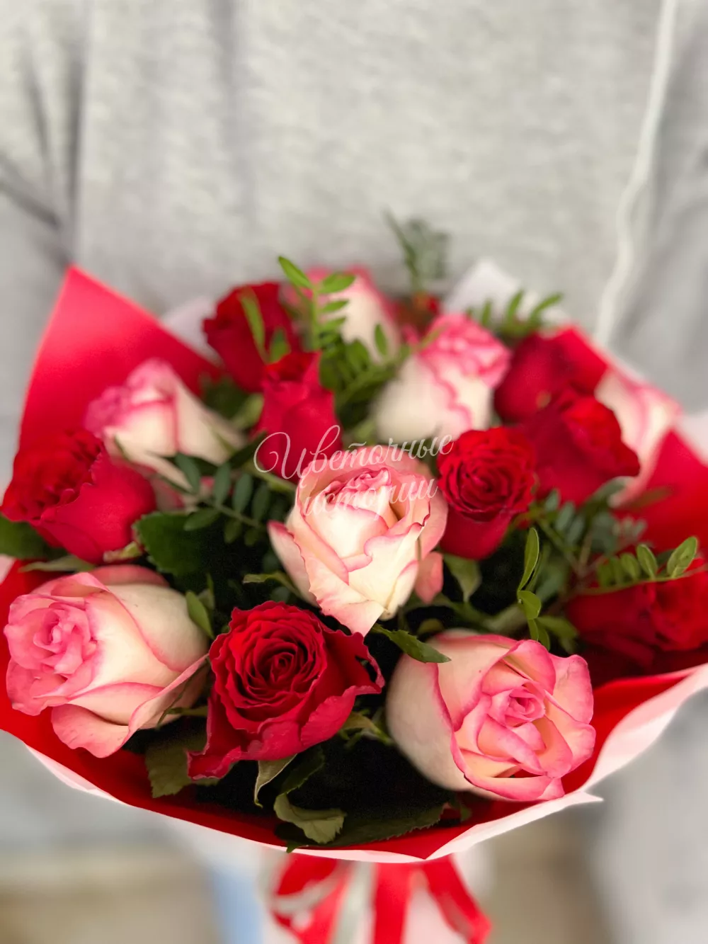 Мы можем создать букет под ваш бюджет, соблюдая все пожелания по составу и цветовой гамме. К букету можем добавить подарок, игрушку, сладости или фрукты.