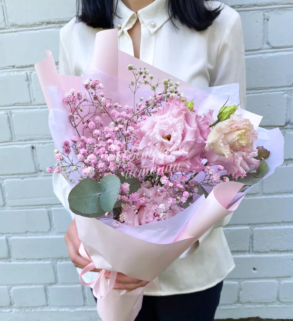 Такая нежность и лёгкость в этом чудесном букете, как первая школьная любовь. Разные фактуры гипсофилы и эустомы завораживают и задерживают взгляд!