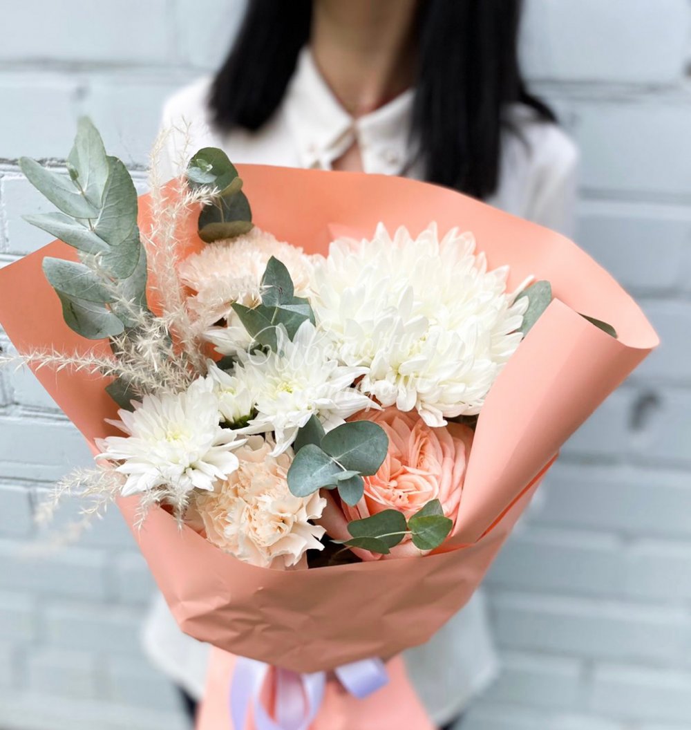 Мы можем создать букет под ваш бюджет, соблюдая все пожелания по составу и цветовой гамме. К букету можем добавить подарок, игрушку, сладости или фрукты.